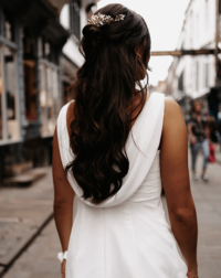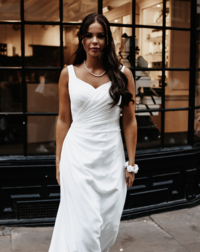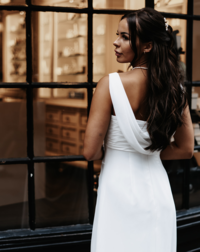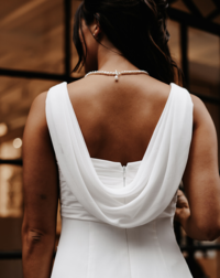With the soft cowl back, Aspen's style is perfect for a beach ceremony, city elopement or even misty mountain top wedding!