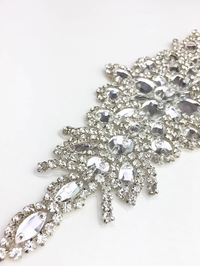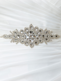 For the bride who loves bling this belt is a real eye catcher. Measuring 25cm x 9cm it can be used to bling up straps or draw attention to the waist on any gown. All belts are sold as appliqués only no ribbons are provided.