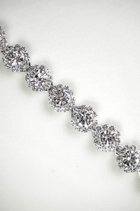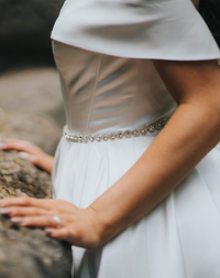 Delicate single strand diamante belt with ribbon fastening. This product can also be used as a hair vine for a more boho, unique look. BL16 also comes in a rose finish.