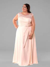 Stunning lace bodice detail with delicate sparkle embellishments around the neckline. The simple chiffon skirt with slight rouched detail adds a quite sophistication to this stunning gown.