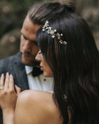 Delicate gold hair vide with ivory floral details and diamante embellishments. Perfect for that soft up do, intertwined throughout your hair creating a timeless elegant look.