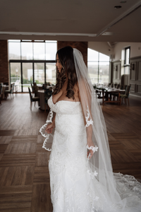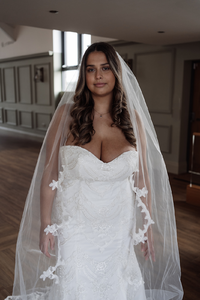 VL086 | Single tier full length delicate scalloped lace edged veil | Accessories