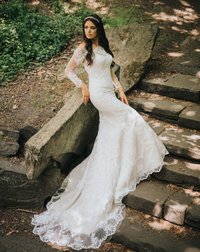 *Discontinued Style* This showstopping gown is one of our most figure-hugging fishtail styles, and a reliable bestseller thanks to her exquisite lace and flattering structure.