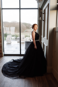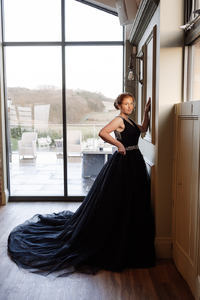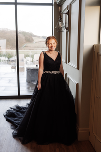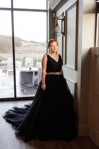 This perfect princess gown mostly comprises simple, luxurious tulle - which elegantly draws attention to the exquisite embellishments.