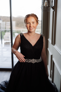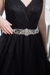 Detailed embellishment at the waist, shoulders and stunning keyhole back finishes this otherwise simple gown, creating a real feeling of glamour and femininity without detracting from the gorgeous simplicity.