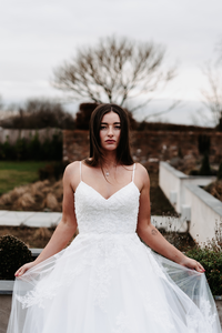 This beautiful princess gown has a simple yet flattering A-line shape.