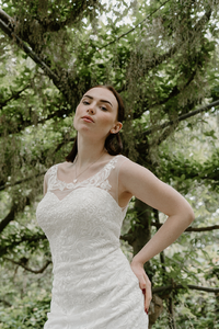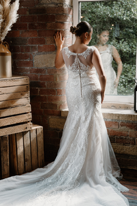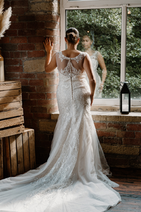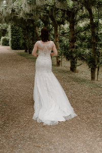 The stunning illusion neckline and glorious back detail are truly unique and eye-catching.