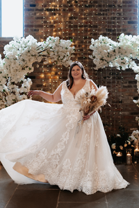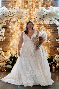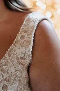This gown is available in stunning traditional ivory, or in mocha to pick out the detail on the lace.