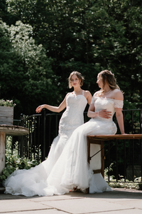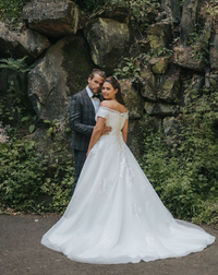The detailed off-the-shoulder bodice is a firm favourite among brides, thanks to the traditional sweetheart combined with a modern straight-across twist.