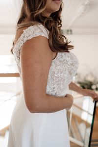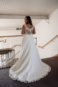 Romantic and light with beautiful floral lace the WD142 is sure to make a lasting impression with any bride.