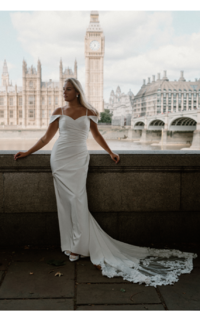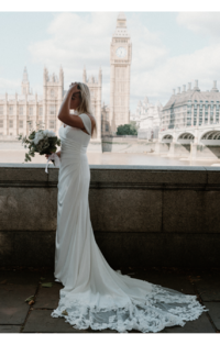 Simple and sophisticated, the WD171. A firm favourite for every style of bride, this timeless gown effortlessly combines elegance and modernity. The elegant lace train enhances the simple yet flattering silhouette with an added touch of beauty. Whether you're planning a grand ballroom affair or an intimate garden ceremony, the WD171 is designed to make you feel unforgettable on your special day.